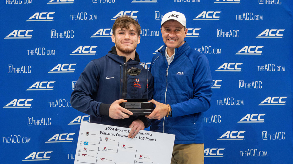 A redshirt freshman from La Vista, Neb., Hamilton entered the tournament as the No. 4 seed at 165 pounds. En route to the ACC title, he won by major decision over No. 5 seed Isaias Estrada (North Carolina) and then knocked off No. 1 seed Derek Fields (NC State) in the semifinals and No. 3 seed Connor Brady (Virginia Tech) in the final.