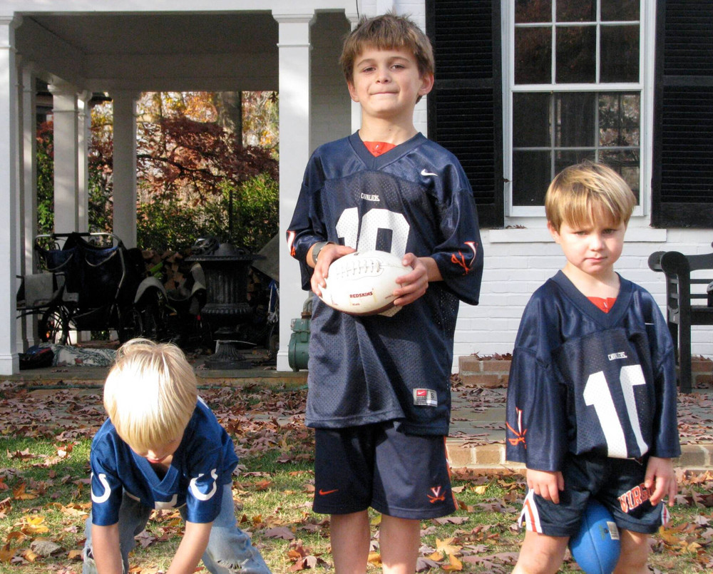 Brothers Sackett (with football), Eli (right) and Hugh Wood in Lynchburg