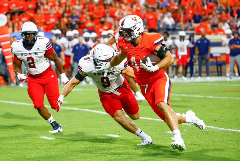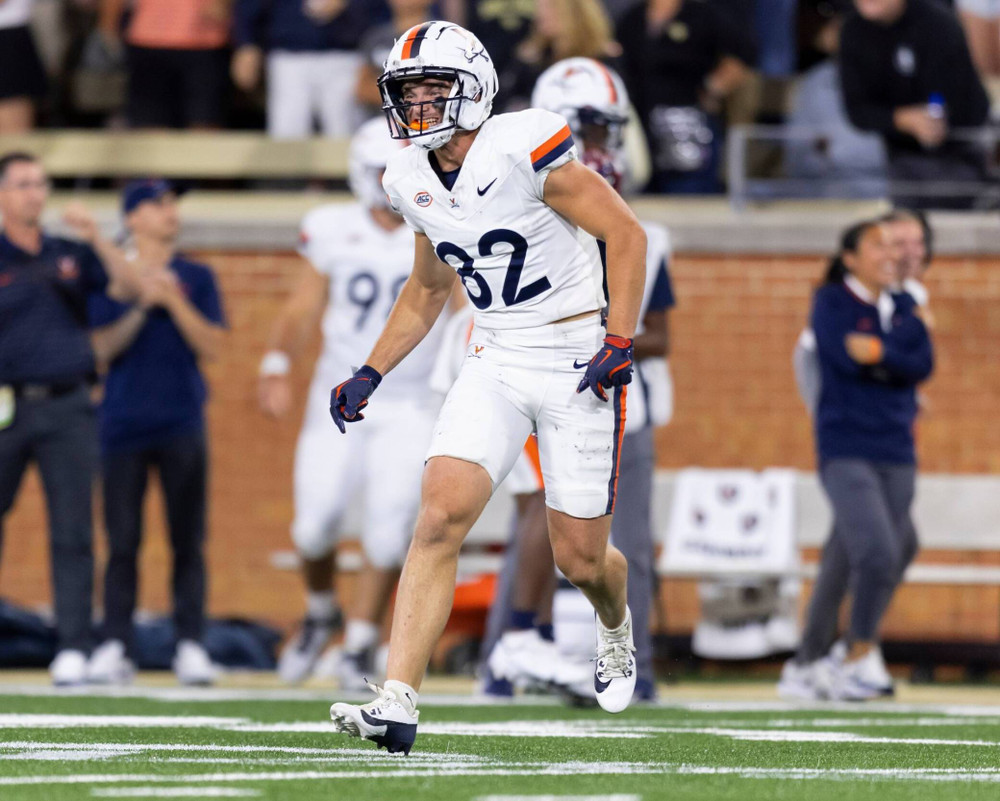Sackett, who plays tight end and wears jersey No. 44, has 22 career receptions as a Cavalier. He’s in his sixth year at UVA but only his fourth year in the football program.