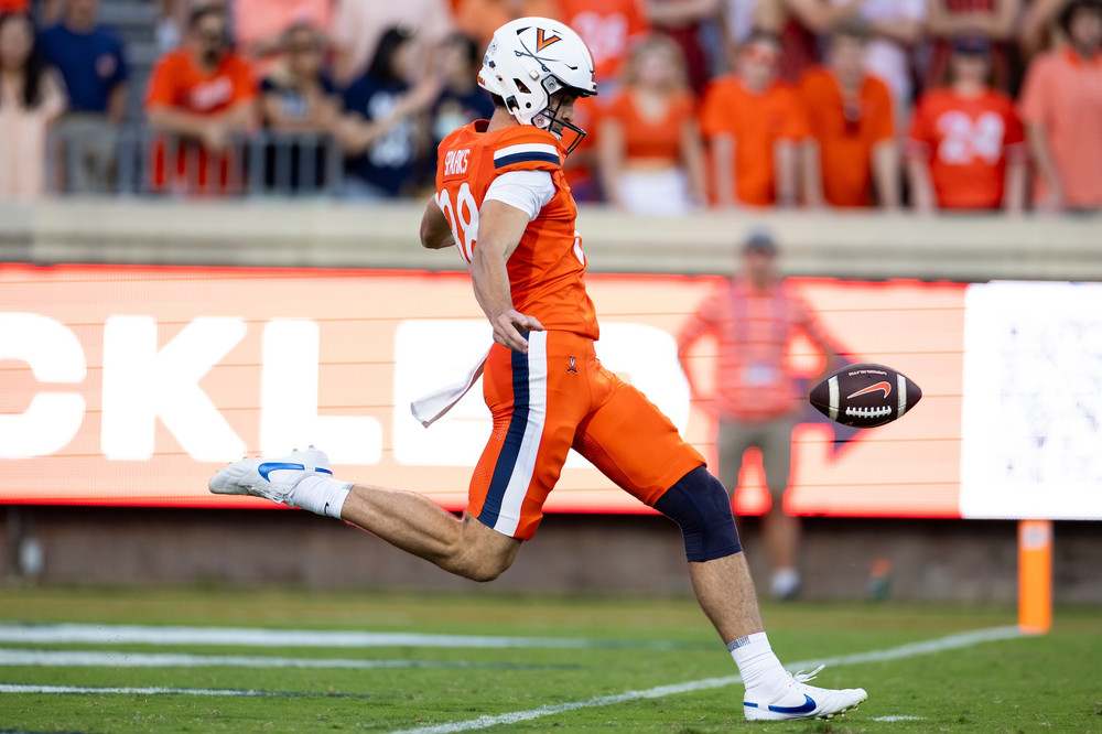 In Virginia’s game against NC State last weekend, Sparks didn’t punt until the second quarter. But he kicked off twice in the first quarter, each time after a Cavalier touchdown, and held for kicker Will Bettridge on two extra points.