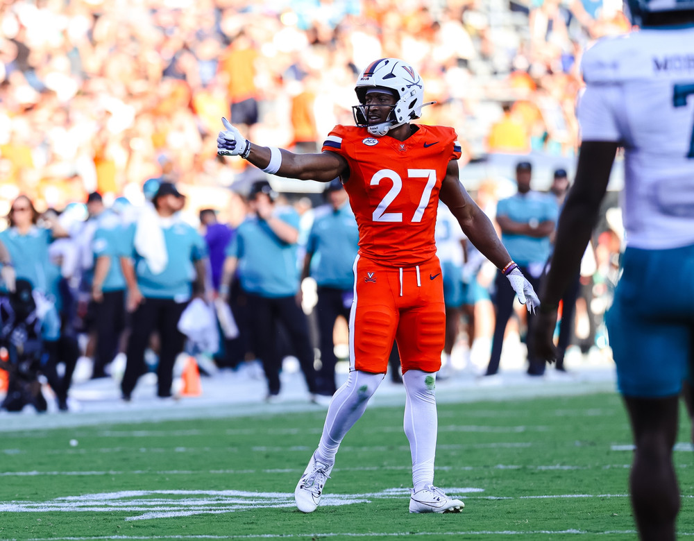 “We anticipated that he would be a guy that would push for first-team reps from day one,” Virginia head coach Tony Elliott said Tuesday. “So he’s continuing to get comfortable in our system and starting to understand all the checks and calls and the communication that’s required of the safeties. I think for the naked eye it seems easy, but with the complexity of offenses nowadays and the amount of communication that has to take place instantly for secondary guys, it’s a little bit challenging. But he’s becoming more comfortable and you see him making plays. I would love to have seen him come down with that interception, but he’s in position [to make the play].”