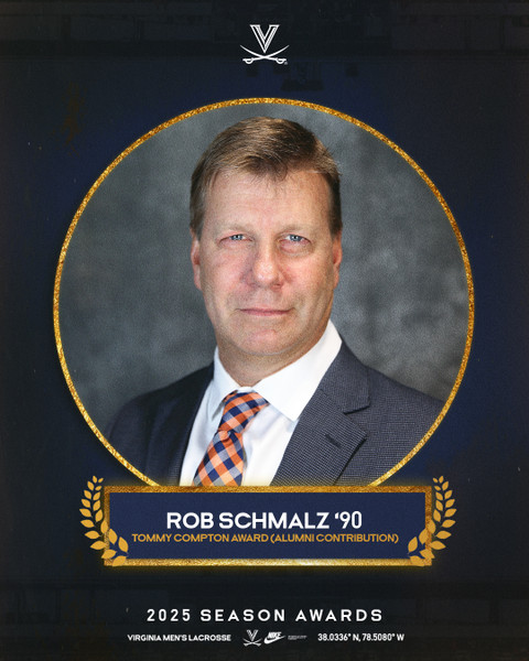 Rob Schmalz ‘90 was named the recipient of this year’s Tommy Compton Award, which is given annually to a UVA men’s lacrosse alum recognized for his meaningful contributions to the program.